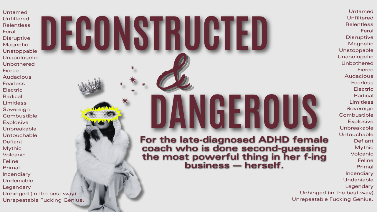 DECONSTRUCTED & DANGEROUS is a three-phase program for female coaches with late-diagnosed ADHD (you).